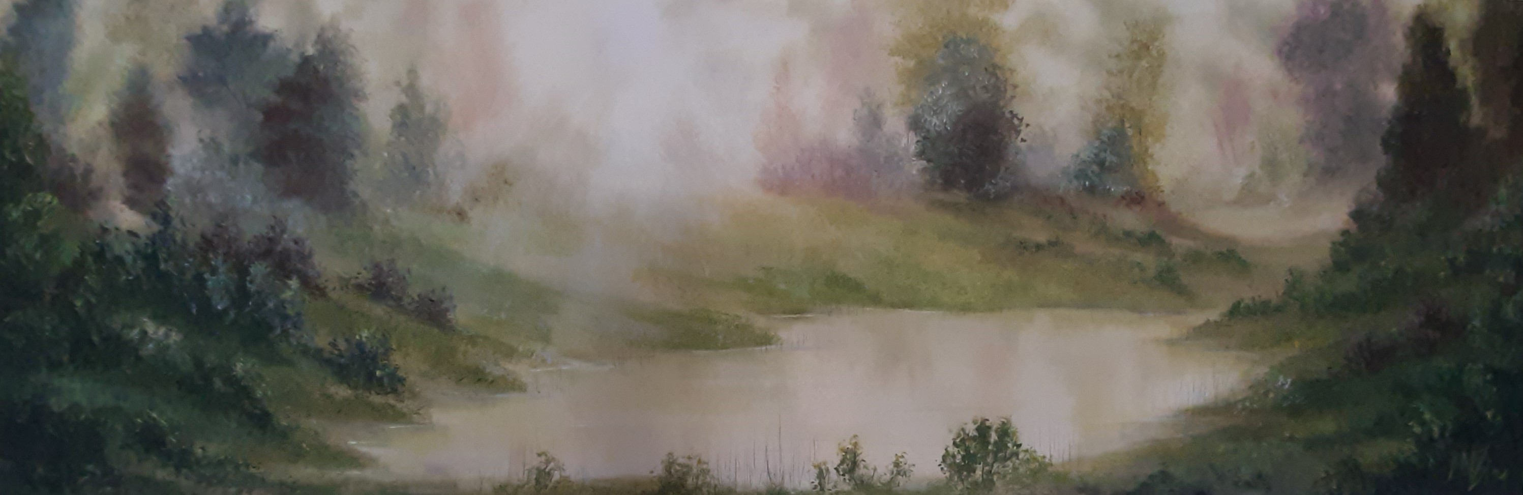 Ein warmer, lichtdurchfluteter Frühlingstag, ein bunter Wald und in der Mitte ein kleiner See. Die kraftvollen Sonnenstrahlen wärmen die Szene und bannen unseren Blick. die bunten Farben der Büsche und Bäume sind erst auf den zweiten Blick erkennbar.