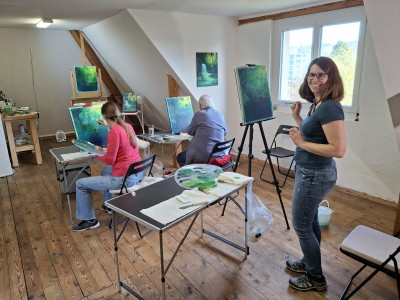 Male diese wunderbare Szene mit mir! Es sind keine Vorkenntnisse notwendig und du kannst das fertige Bild am Ende des Tages mit nach Hause nehmen.
