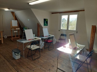 Im strahlenden Sonnenschein fand der erste Malkurs im brandneuen Atelier Karmin statt. Der Dachstock ist ausgebaut, frisch und hell gestrichen, damit man die wunderbaren Kreationen die hier entstehen werden, auch gut sehen kann. Der Boden ist frisch geölt, die Kaffemaschine läuft, alles bereit für viele weitere Kurse! Die Feuertaufe ist geglückt, auf ein Neues ganz bald.