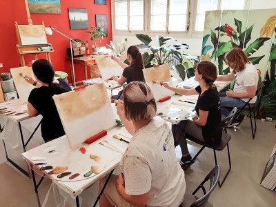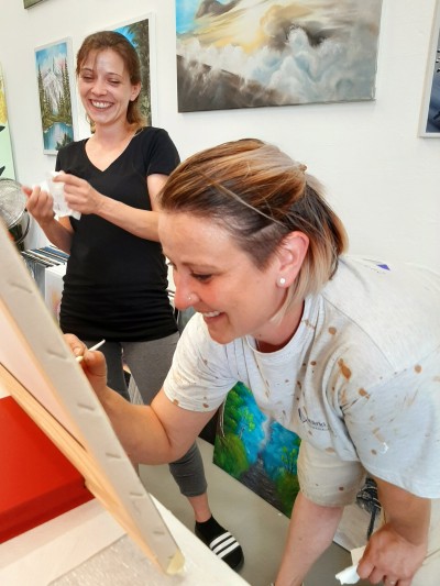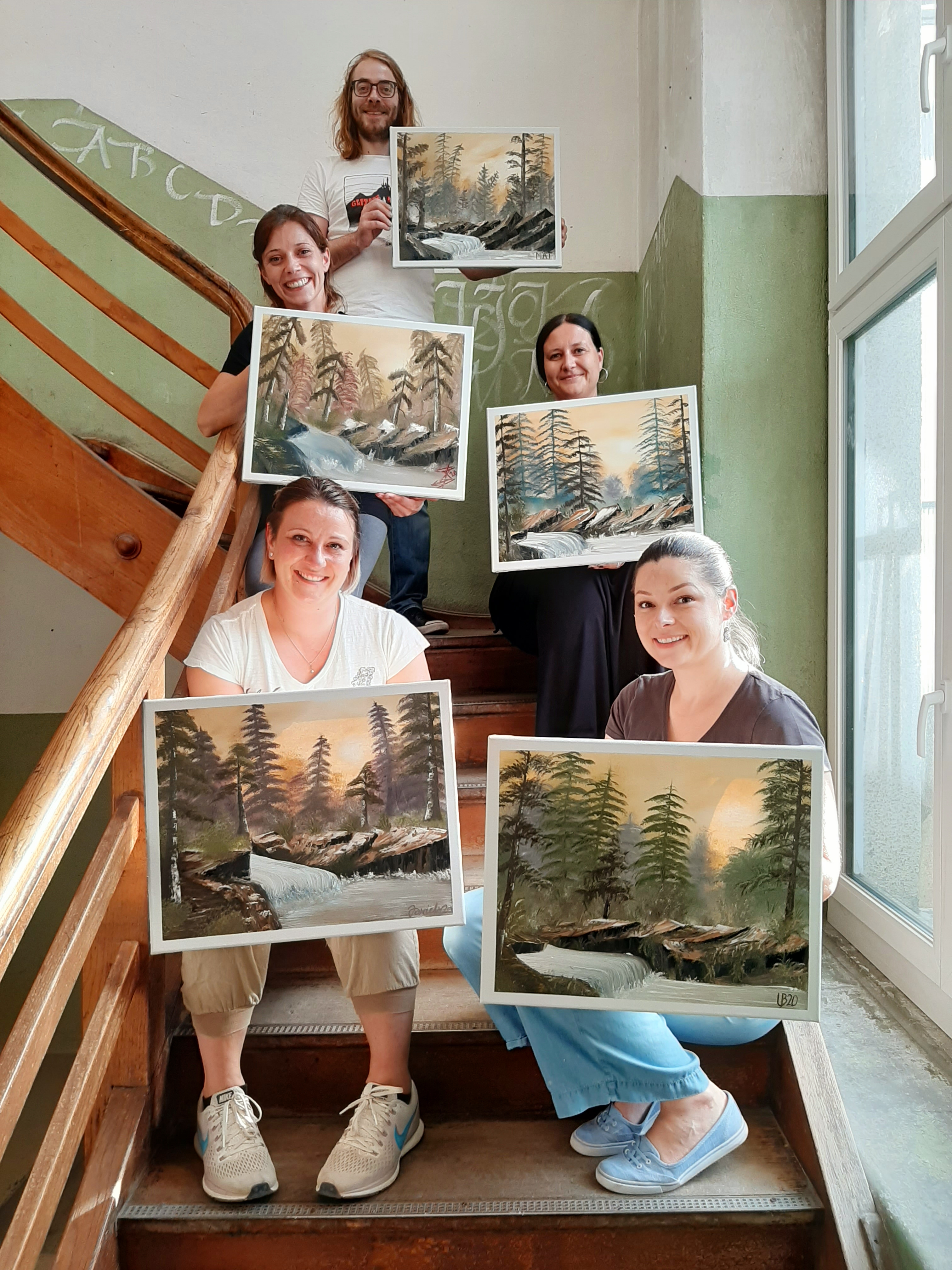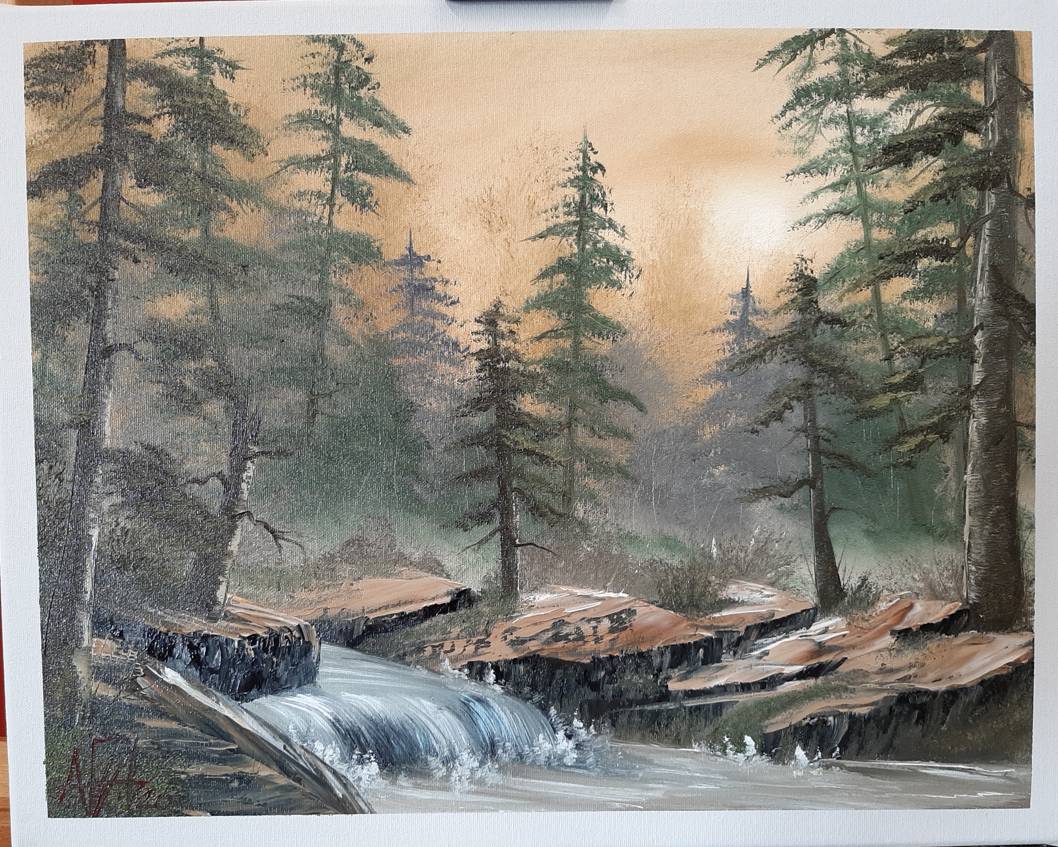 We are painting "deep woods" from Bob Ross®. This simple, yet effectfull painting is taking us into a mystical forest with a bubbling stream. You will learn how to use your fan brush and the knife. I am looking forward to be painting this project with you!